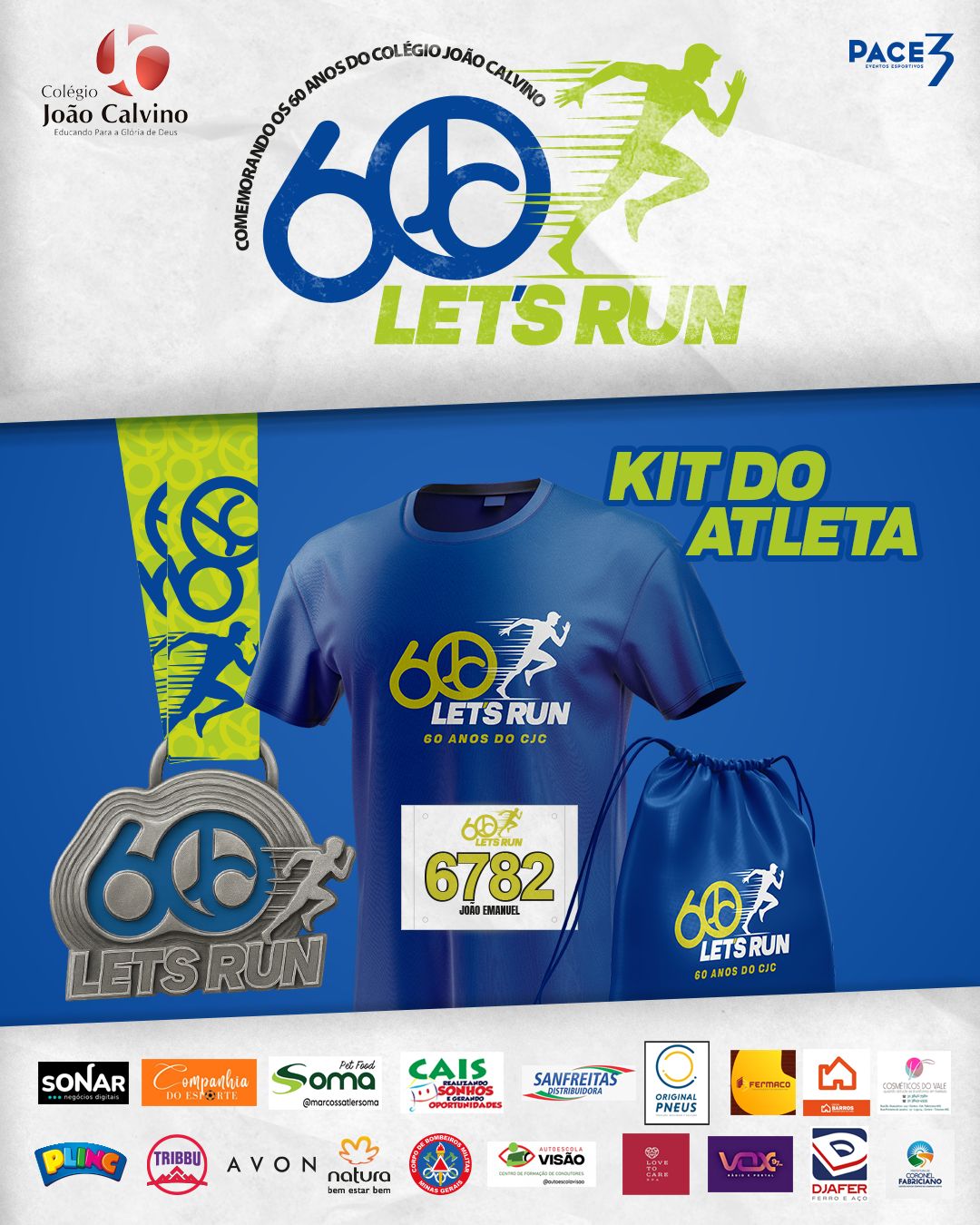 - Modalidades: Corrida 5km / Caminhada 3km / Corridinha Kids